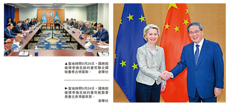 左图:9月24日,总理李·齐安(Li Qiang)在纽约会见了联合国秘书长古特雷斯(Guterres)。 \新华社;正确的图片:9月24日,当地时间,欧洲委员会的总理李·贾恩(Von der Leyen)在纽约相识。 \新华社于9月24日,当地时间,李·齐安(Li Qiang)总理在纽约会见了欧洲委员会主席冯·德莱恩(Von der Leyen)。李·昆格(Li Qiang)宣布,他希望欧盟和中国将采取实际行动来增强彼此的信任,诚实对待彼此,尊重诺言,断言在保留差异的同时寻找共同的土地,查看差异,查看大图,寻找适合的利益点,找到最大的分裂,找到最大的分裂,促进中国 - 欧洲 - 欧洲 - 欧洲 - 欧洲 - 欧洲 - 欧洲合作,将受益于Mathey中的人。我们希望欧洲的一方能够履行其对维护开放贸易和投资市场的承诺,遵守WTO的公平竞争和规则,并避免一般的政治和一般经济贸易问题。据新华社报道,李·齐安(Li Qiang)今年表示,[ta if pao news]表示,今年已经纪念了中国与欧洲之间外交关系的50周年。 7月,习近平总统会见了北京总统和科斯塔总统,并达成了重要的同意,以进一步发展与中国 - 欧盟的关系并提供战略指导。中国愿意在欧洲一方合作,在双方之间达成共识,促进建立外交关系,加强统一与合作的最初意图,并促进与中国 - 欧盟关系的健康和稳定发展。李·齐安(Li Qiang)说,在过去的50年中,中国 - 欧盟的关系经历了国际变化的考验,并普遍保持健康,稳定的发展。一个非常重要的原因是,双方始终保持良好的沟通和交流,并且基于理解和信心,他们积极地指示解决冲突和差异的方法。我们希望欧盟将与中国合作,采取实际行动来增强彼此的信任,诚实对待彼此,尊重诺言,断言寻求共同点的同时保留差异,看到中国 - 欧盟的利益合作的加深和发展,并更好地从双方受益。我们希望欧洲的一方能够实现维持开放式贸易市场和投资的承诺,并遵守WTO的公平竞争和规则,并避免一般的政治和一般经济和贸易问题。当前的国际局势发生了新的复杂变化,不稳定和不确定的因素仍在上升。作为世界上宝贵的两极,中国和欧洲应表现出责任感,遵守战略自治,遵守公平和正义,在全球工作中发挥更具建设性的作用,更好地保护中国和欧洲的共同利益以及国际社会,稳定和特定的世界力量。冯·莱恩(Von der Leyen)说,作为世界上两个主要经济体,对话的加强,增强对彼此的理解和加深信任具有重要意义,这对大人物方面和全球发展具有重要意义。 The European side is ready to actively implement the consensus reached in China and Europe at the meeting of China-European leaders this year, properly resolve the differences through dialogue and consultation, and achieved new results of cooperation in the field of trade and investment, environmental protection, developmental assistance, etc. Li Qiang said China is willing to strengthen communication and coordination with the United Nations and related parties, cooperating to implement global management initiatives, promote the construction of a more just and理性管理系统,并为促进世界和平与发展做出更多贡献。李·齐安(Li Qiang)指出,中国将会严格保护联合国的地位和权威,并促进国家使用联合国平台来进行对话与合作,并协调强有力的行动。目前,一些单方面和贸易保护主义的行动受到世界经济的攻击,严重拖延了2030年可持续发展议程的实施。中国始终与自己的发展与全球发展密切相关,将继续遵守高水平的开放,在其他国家共享发展机会,并将世界经济作为“稳定器”和“动力来源”发挥作用。古特雷斯(Guterres)感谢习近平总统在联合国气候变化峰会上发表宝贵的视频演讲。习近平总统的全球治理倡议具有丰富的含义,其基本概念与联合国遵守的信念相符大声的语音ng国际社会将改变和改善全球管理系统。联合国大会主席:坚决遵守单中国原则。 Li Qiang于当天在纽约举行的第80联合国大会主席Bell Burke会面。李·齐安(Li Qiang)指出,台湾的问题是中国的主要利益,并认为主席和联合国将继续遵守One-China原则。 Belburke说,联合国大会决议2758的含义很明确,联合国大会坚定地遵守了One-China的原则。